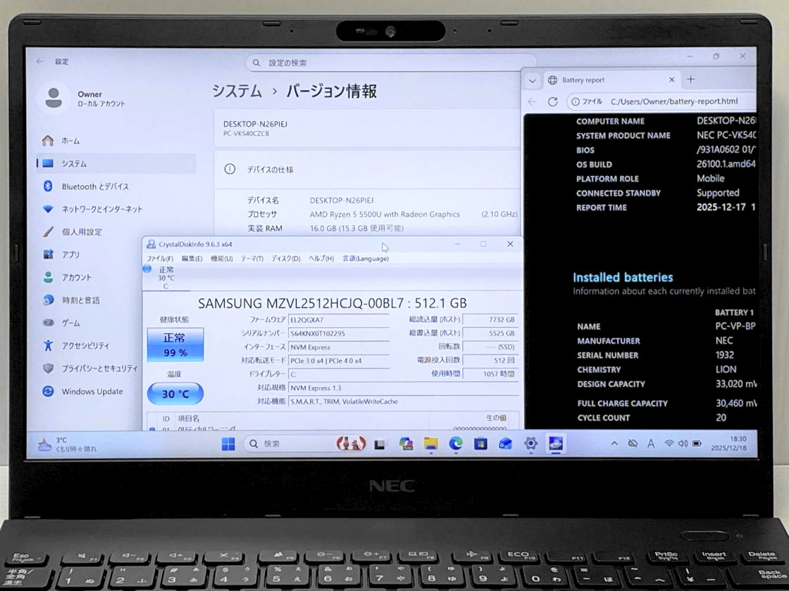 | CPU | AMD Ryzen5 5500U 2.1GHz | メモリ | 16GB |