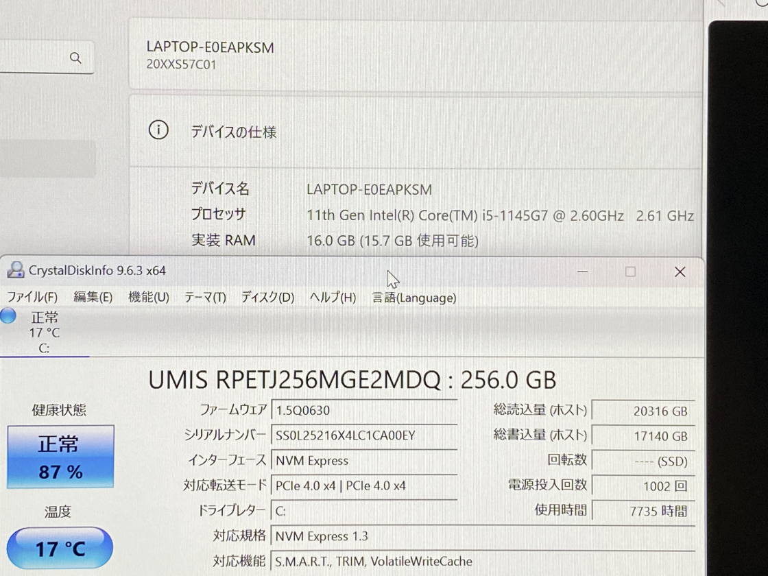 | CPU | 第11世代TigerLake Core i5 1145G7 2.6GHz | メモリ | 16GB |