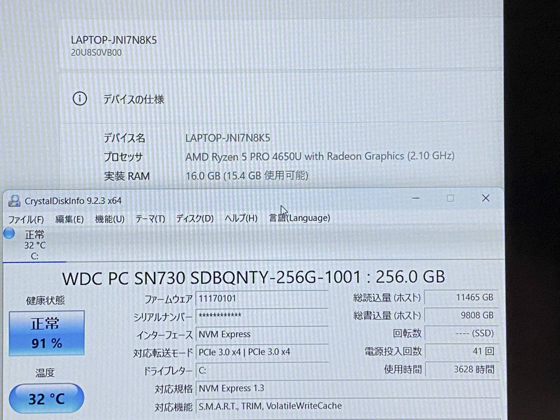 CPU | AMD Ryzen 5 PRO 4650U 2.1GHz | メモリ | 16GB |