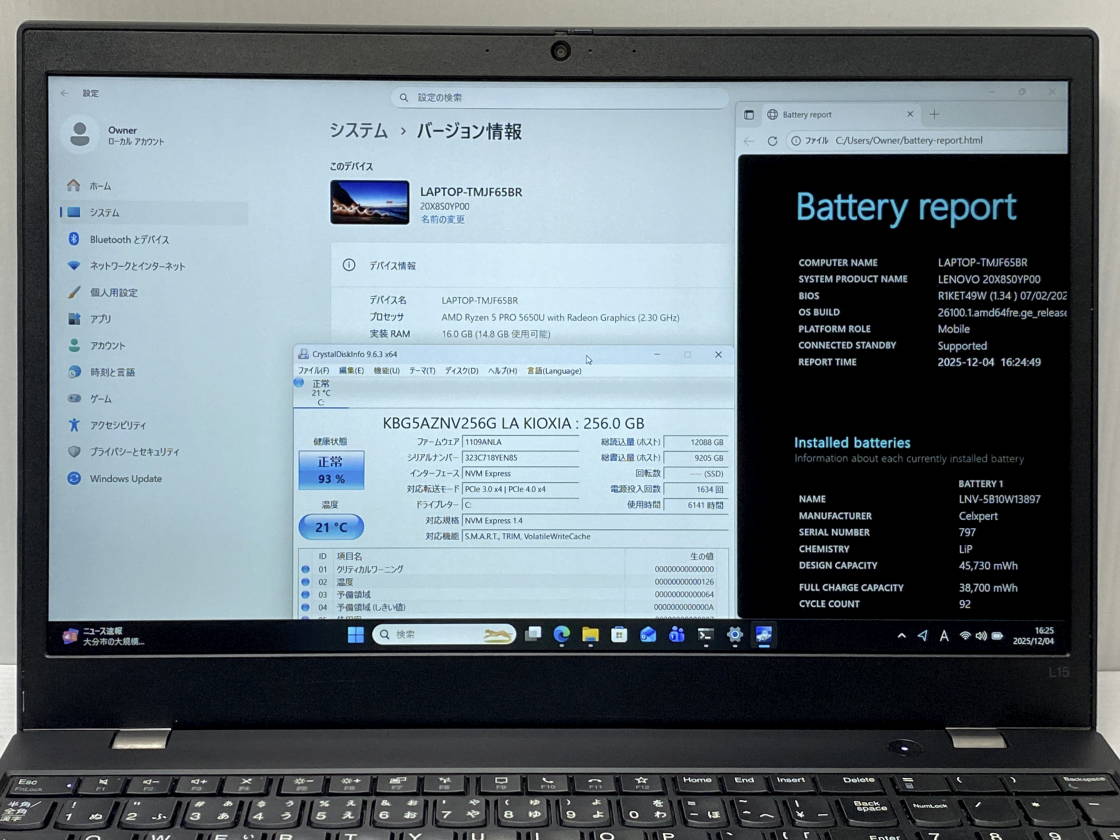 | CPU | AMD Ryzen 5 PRO with Radeon Graphics 5650U 2.3GHz | メモリ | 16GB |