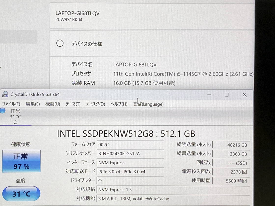 | CPU | INTEL 第11世代TigerLake Core i5 1145G7 2.6GHz | メモリ | 16GB |
