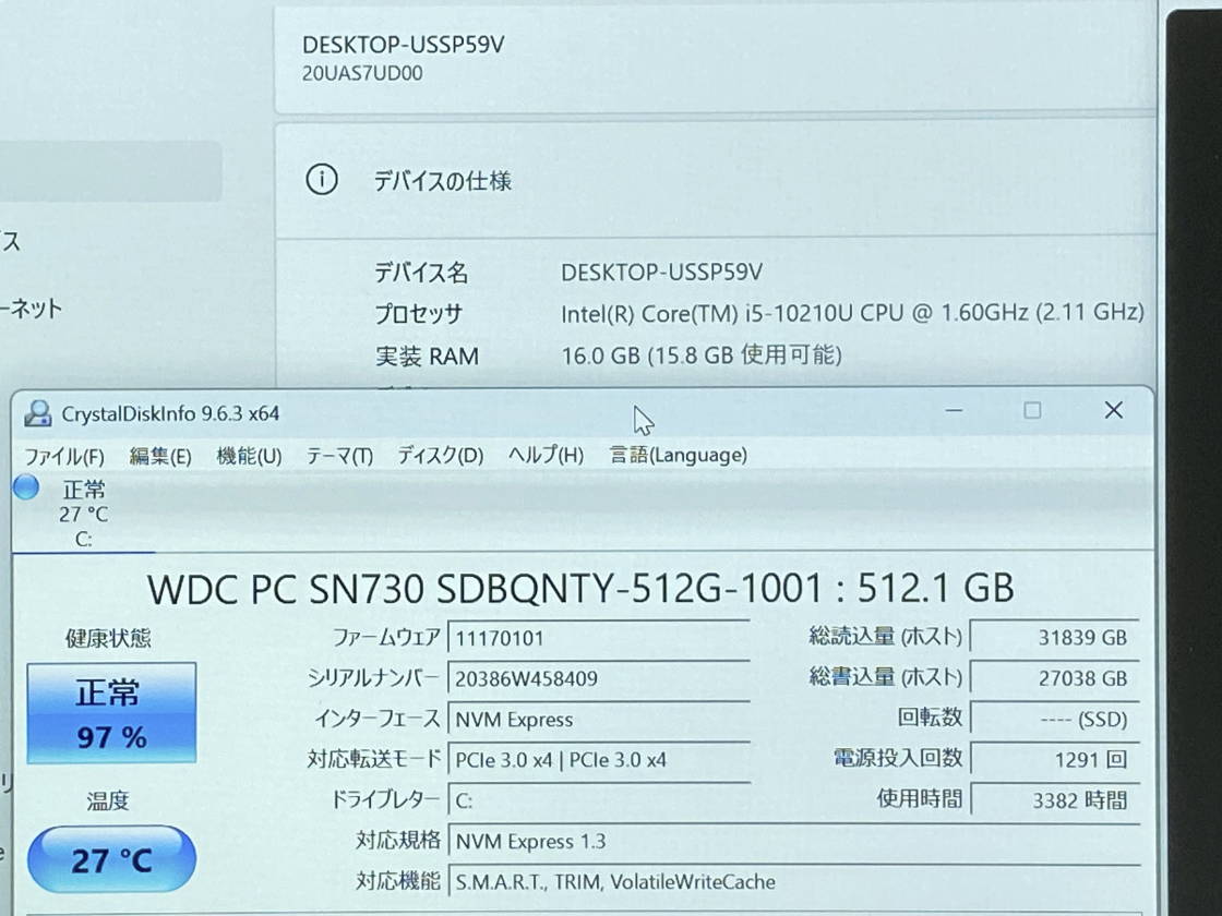 | CPU | 第10世代CometLake Core i5 10210U 1.6GHz | メモリ | 16GB |