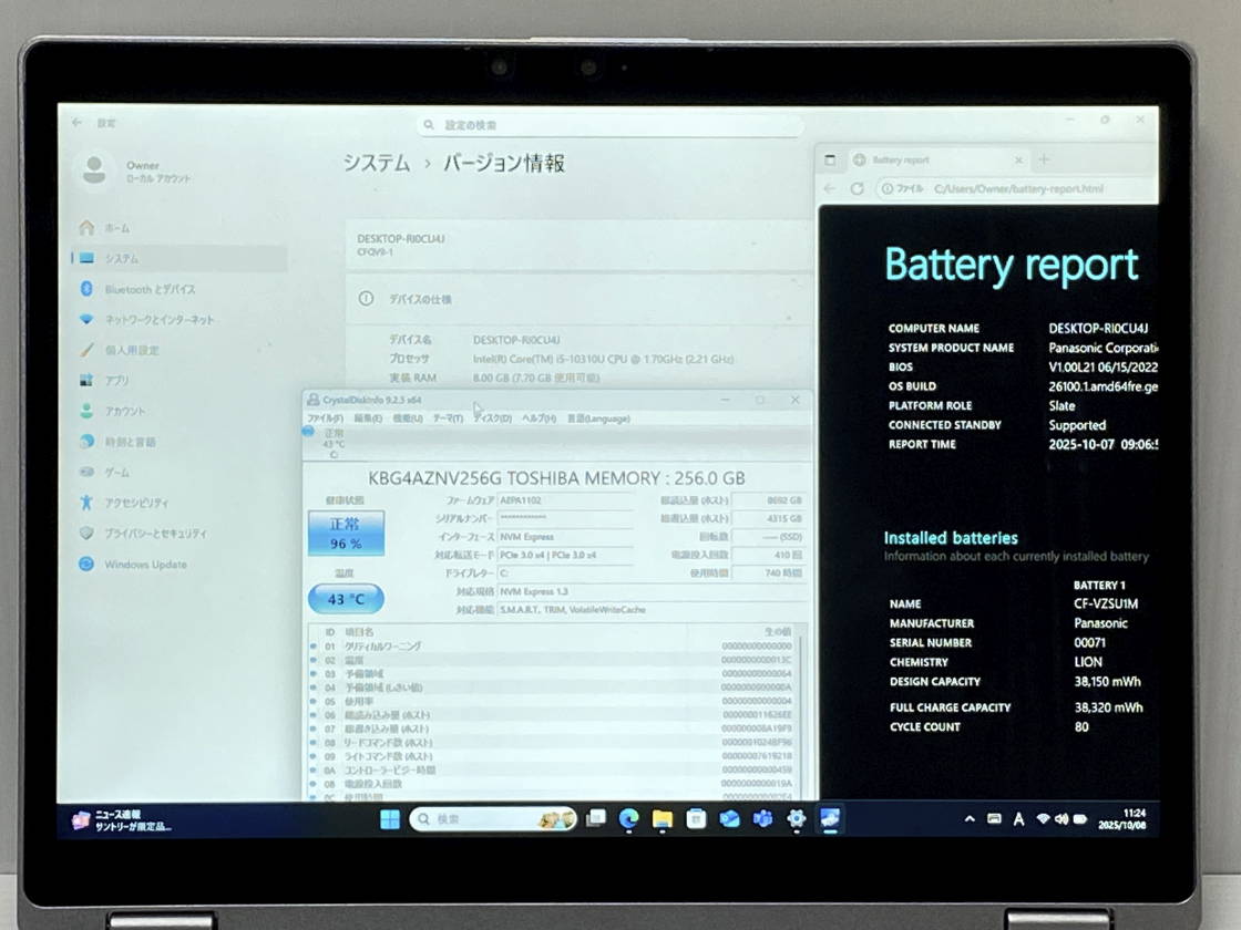 バッテリ充電可 OS表示時間2時間37分~5時間03分 目安として