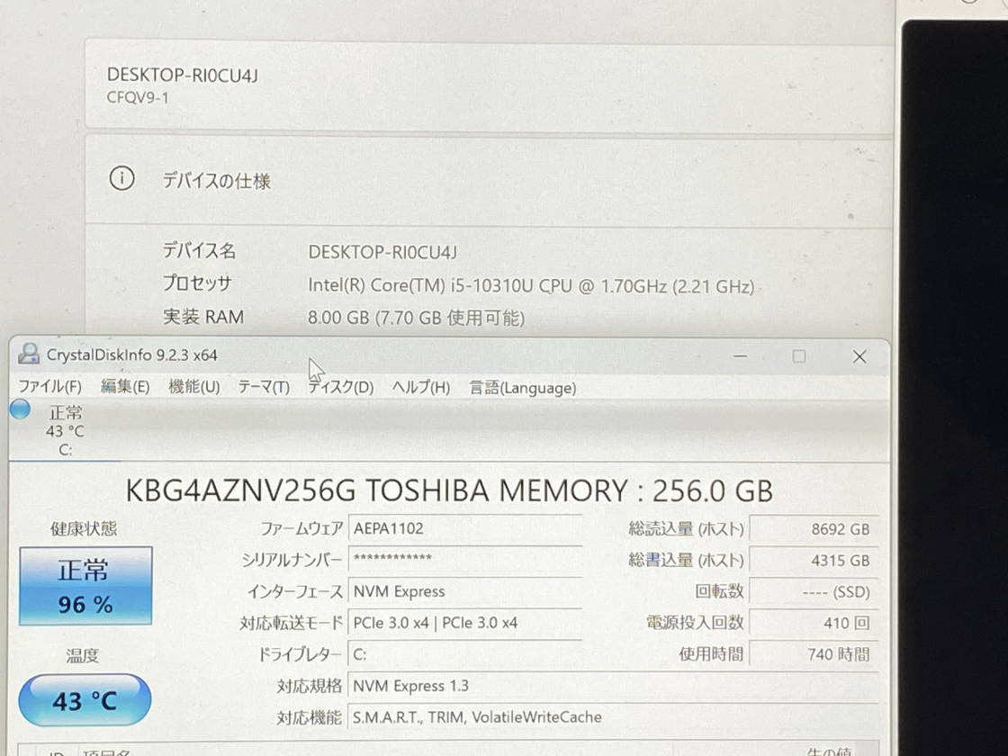CPU | INTEL 第10世代Cometlake Core i5 10310U 1.7GHz | メモリ | 8GB |