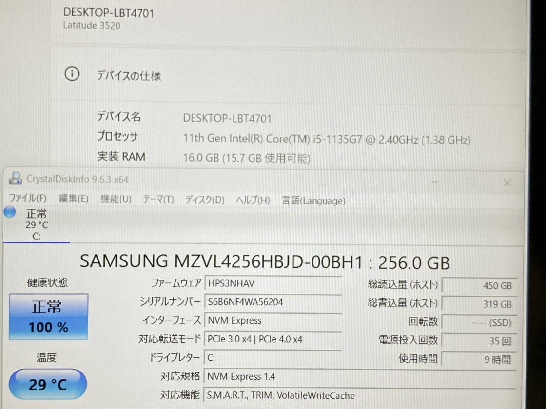 第11世代Core i5 超速起動NVMe256GB
