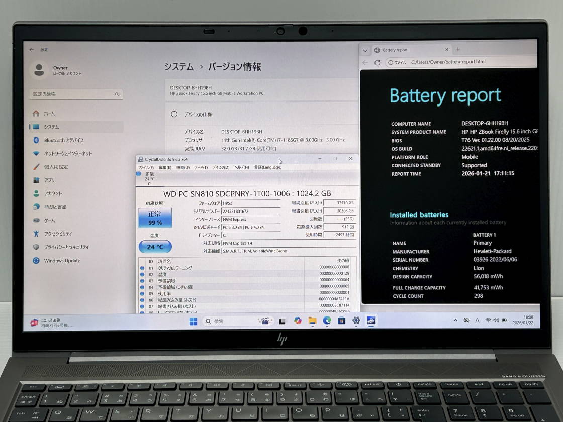 WIN11クリーンインストール。HPアシスタントにてドライバ完全ですがメーカー出荷時アプリはございません。