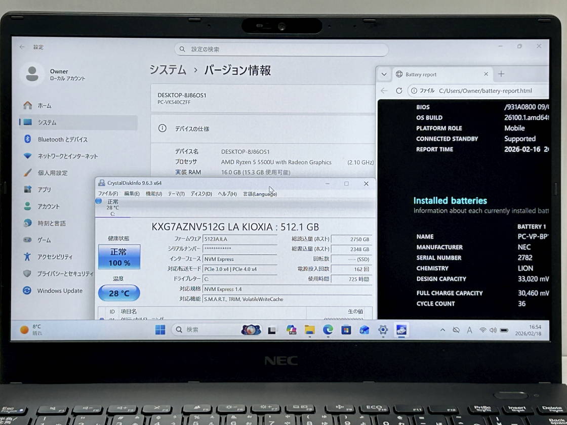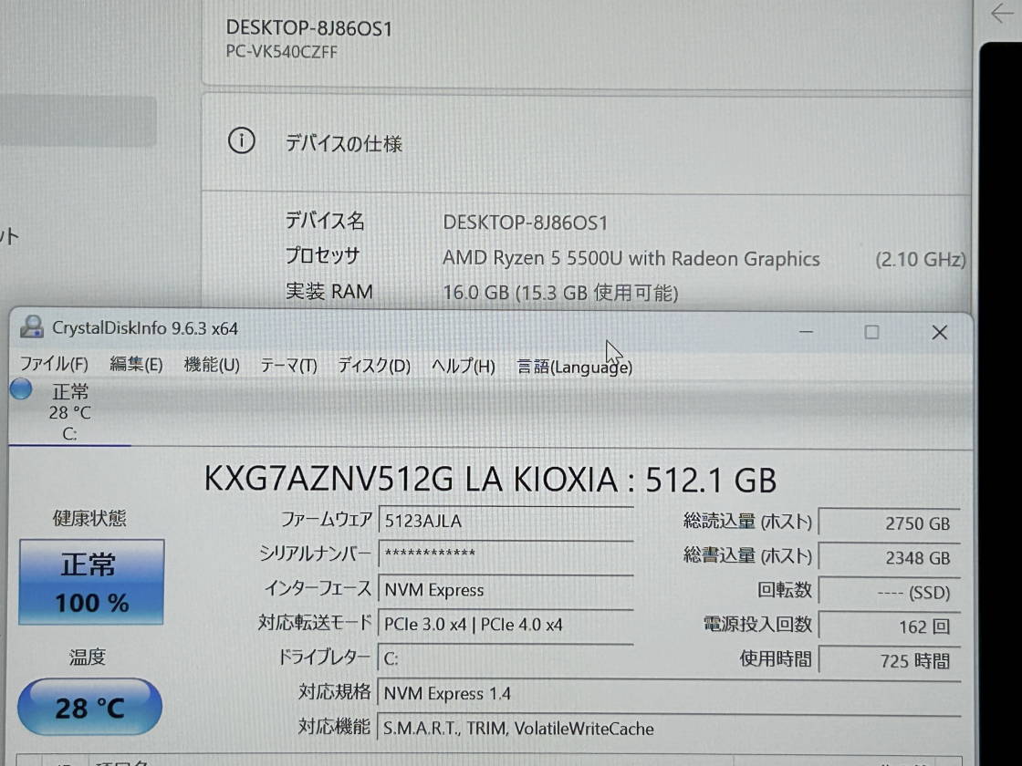 | CPU | AMD Ryzen5 5500U 2.1GHz | メモリ | 16GB |