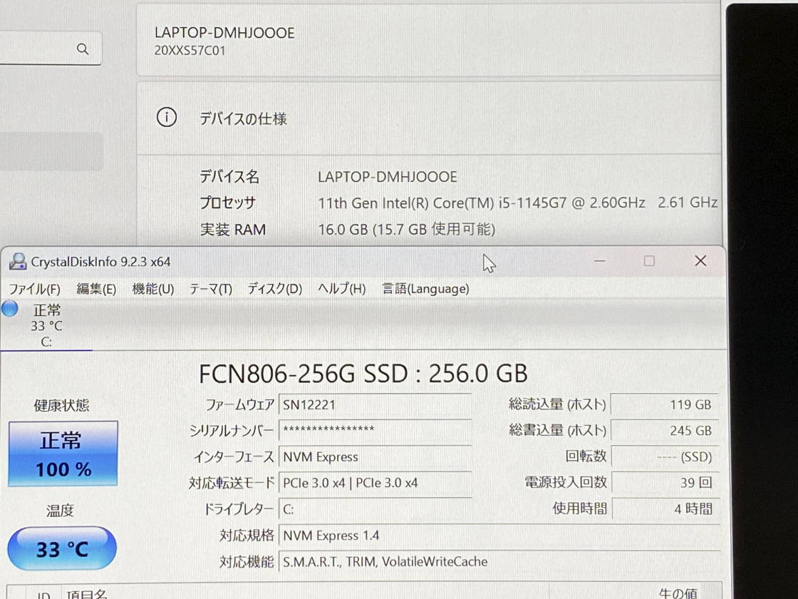 | HDD | 新品NVMe256GB | 光学ドライブ | 非搭載モデル |