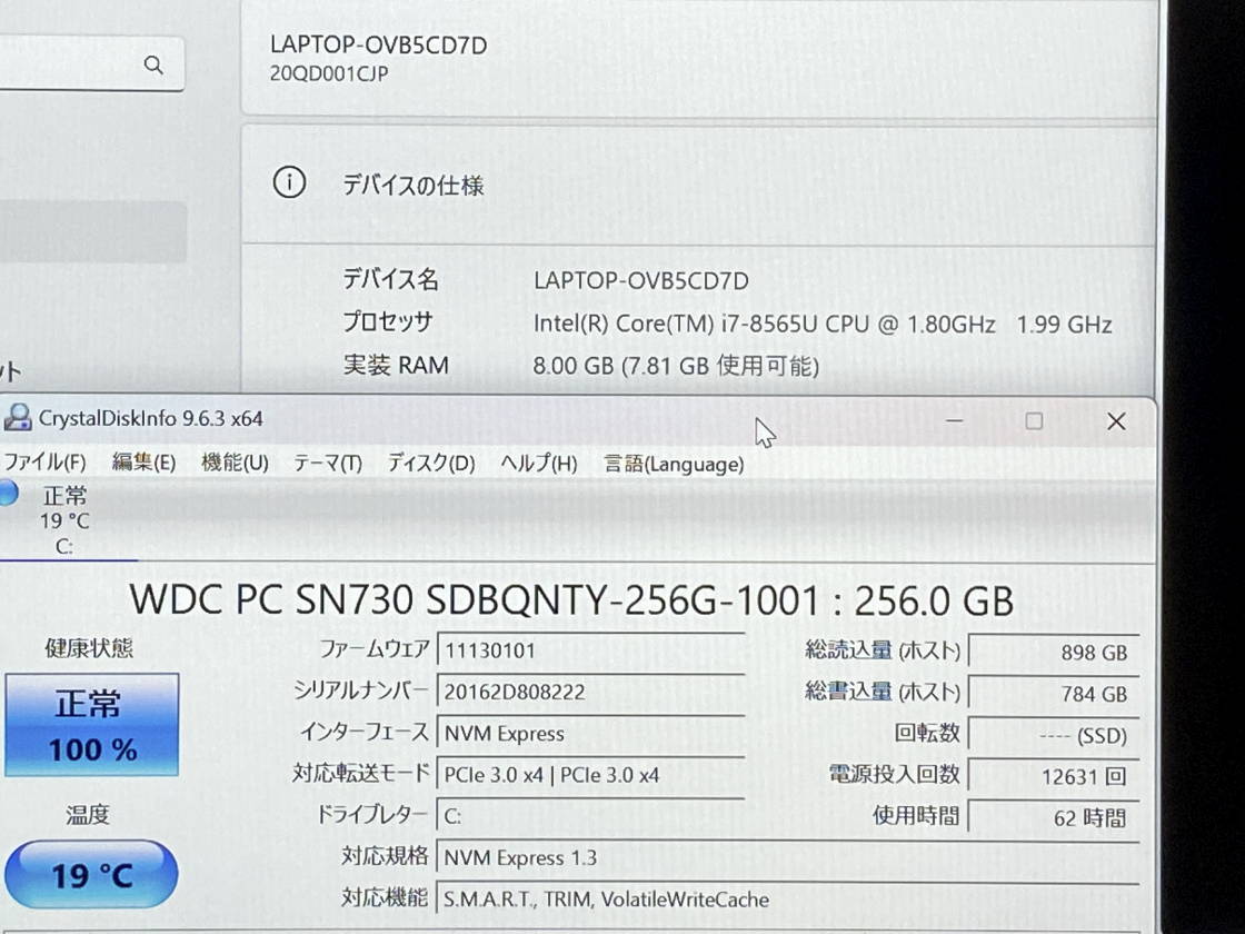 | CPU | 第8世代Whiskeylake Core i7 8565U 1.8GHz | メモリ | 8GB |