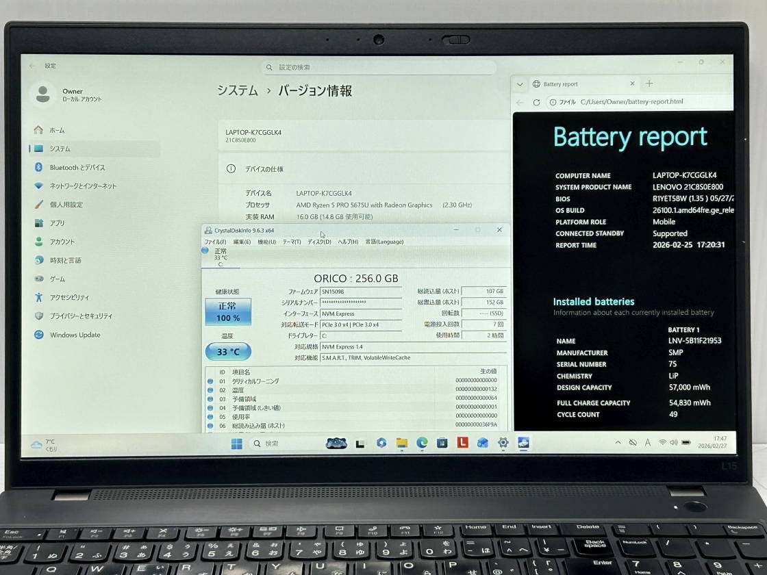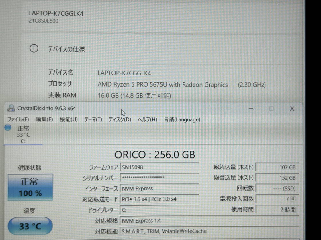 | CPU | AMD Ryzen 5 PRO 5675U 2.3GHz | メモリ | 16GB |