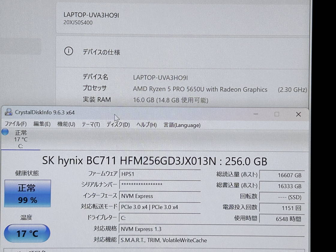 | CPU | AMD Ryzen 5 PRO 5650U 2.3GHz | メモリ | 16GB |