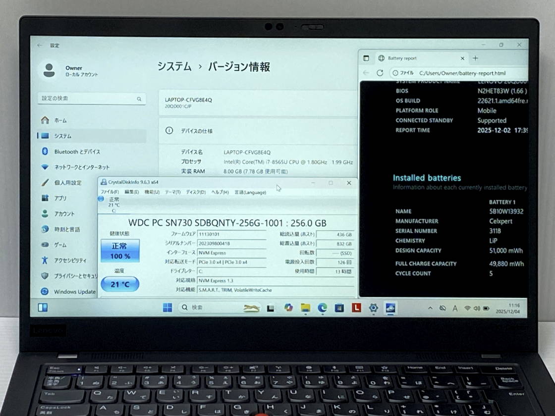 バッテリ充電可 OS表示時間4時間04分~6時間21分 実測ではございませんので目安として