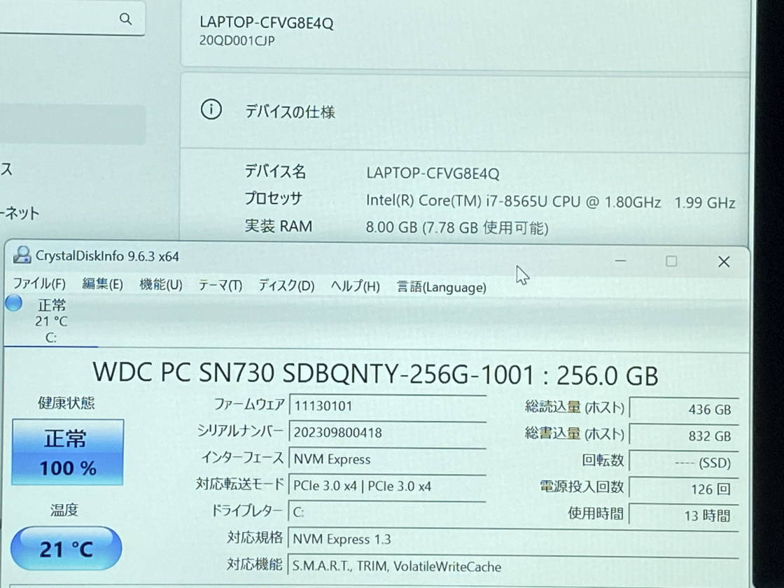 | CPU | INTEL 第8世代WhiskyLake Core i7 8565U 1.8GHz | メモリ | 8GB |