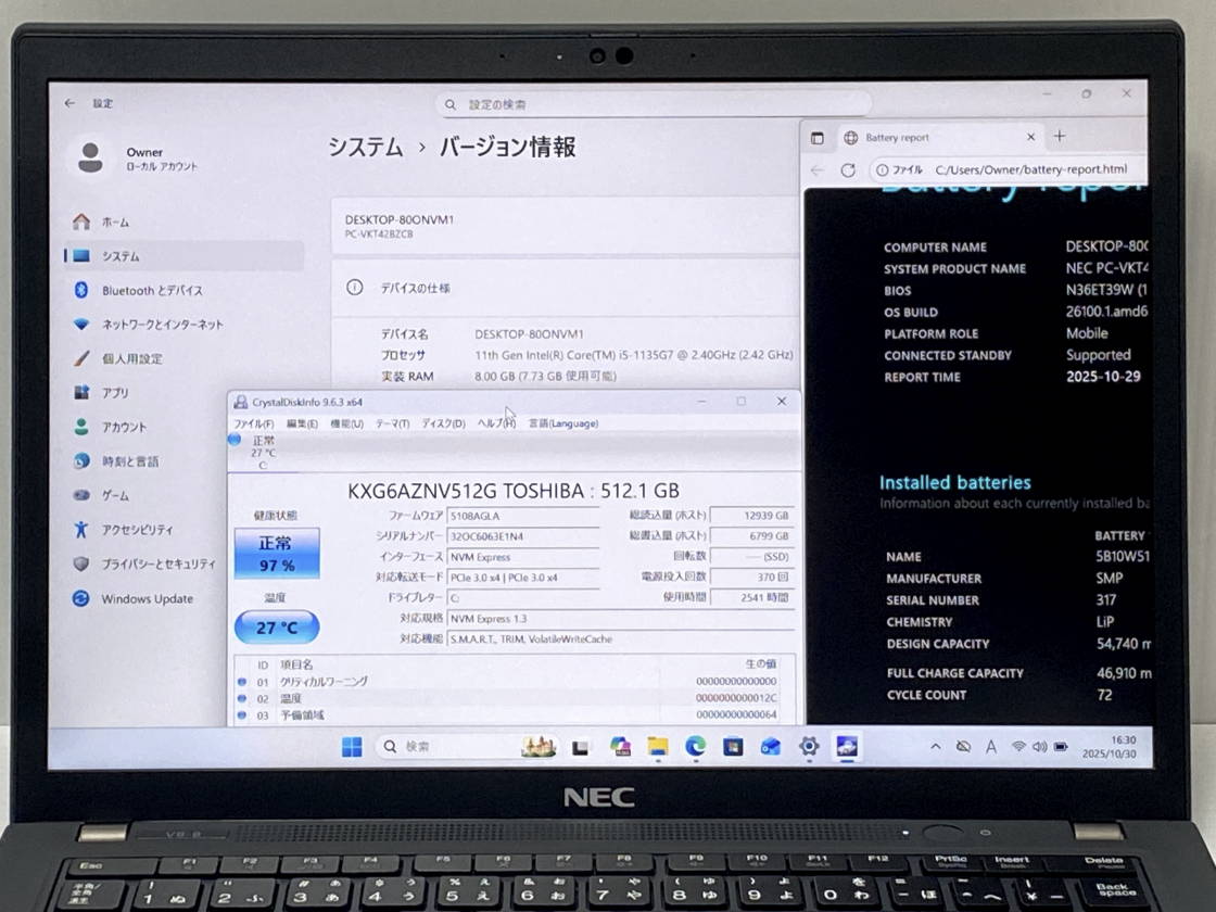 WIN11クリーンインストール ドライバ完全ですがメーカー出荷時アプリはございません。
