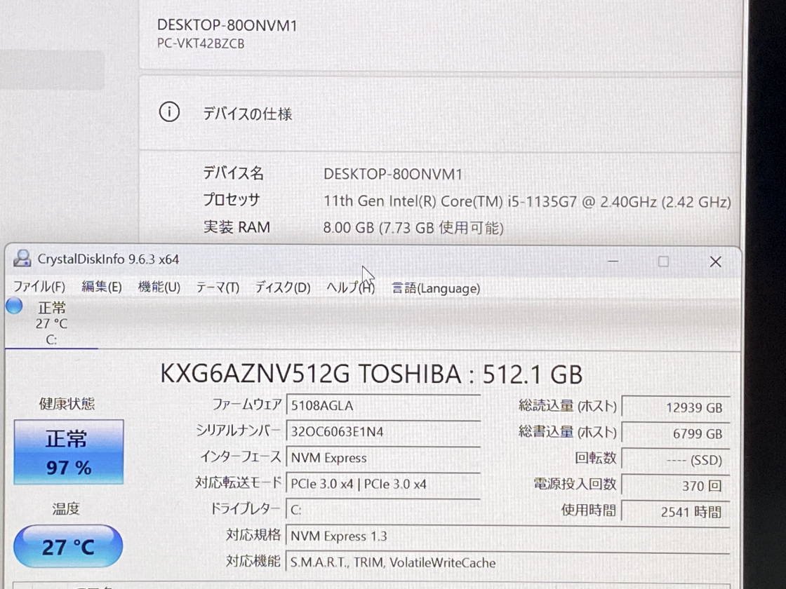 | CPU | INTEL 第11世代Tigerlake 1135G7 2.4GHz | メモリ | 8GB |