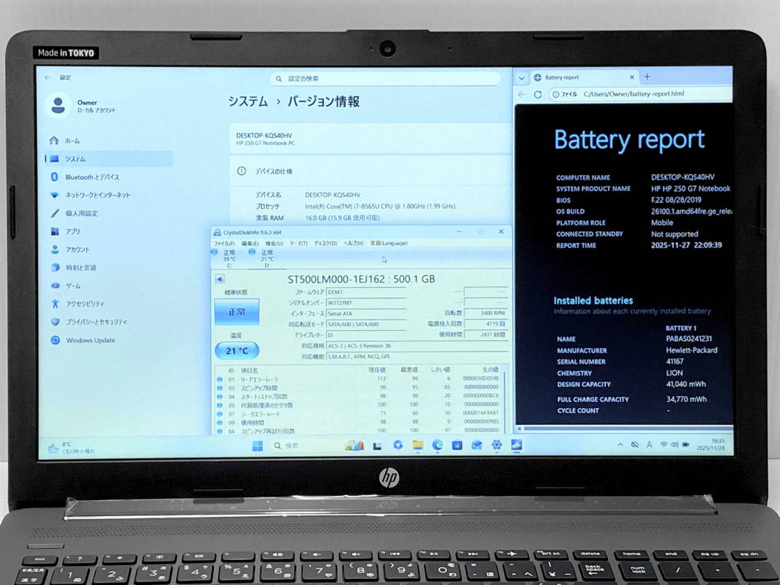 | CPU | INTEL 第8世代Whiskeylake Core i7 8565U 1.8GHz | メモリ | 16GB |