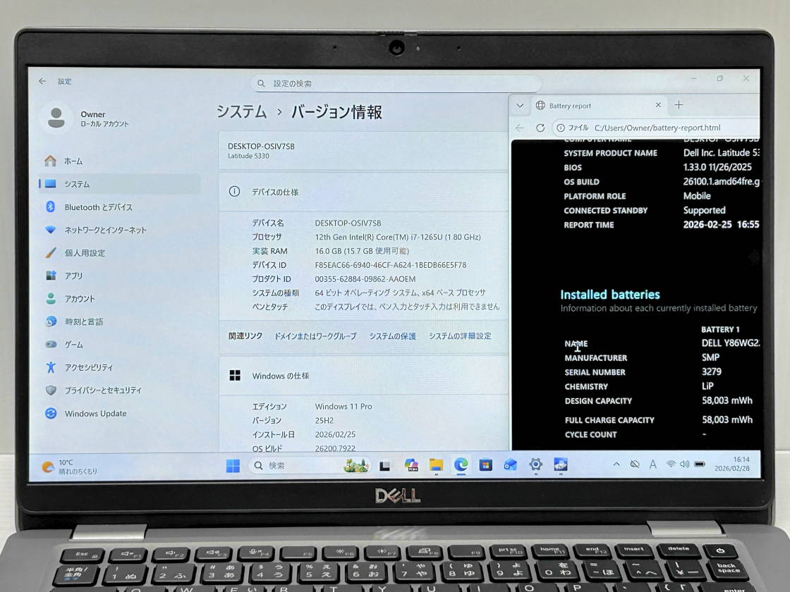Windows BatteryReport 58003/58003mWh バッテリは保障対象外です。
