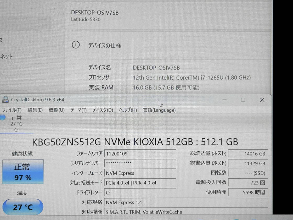 | CPU | INTEL 第12世代Alderlake Core i7 1265U 1.8GHz | メモリ | 16GB |