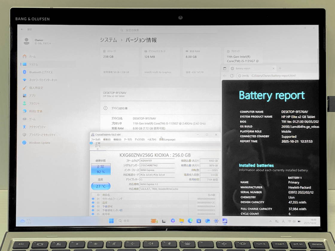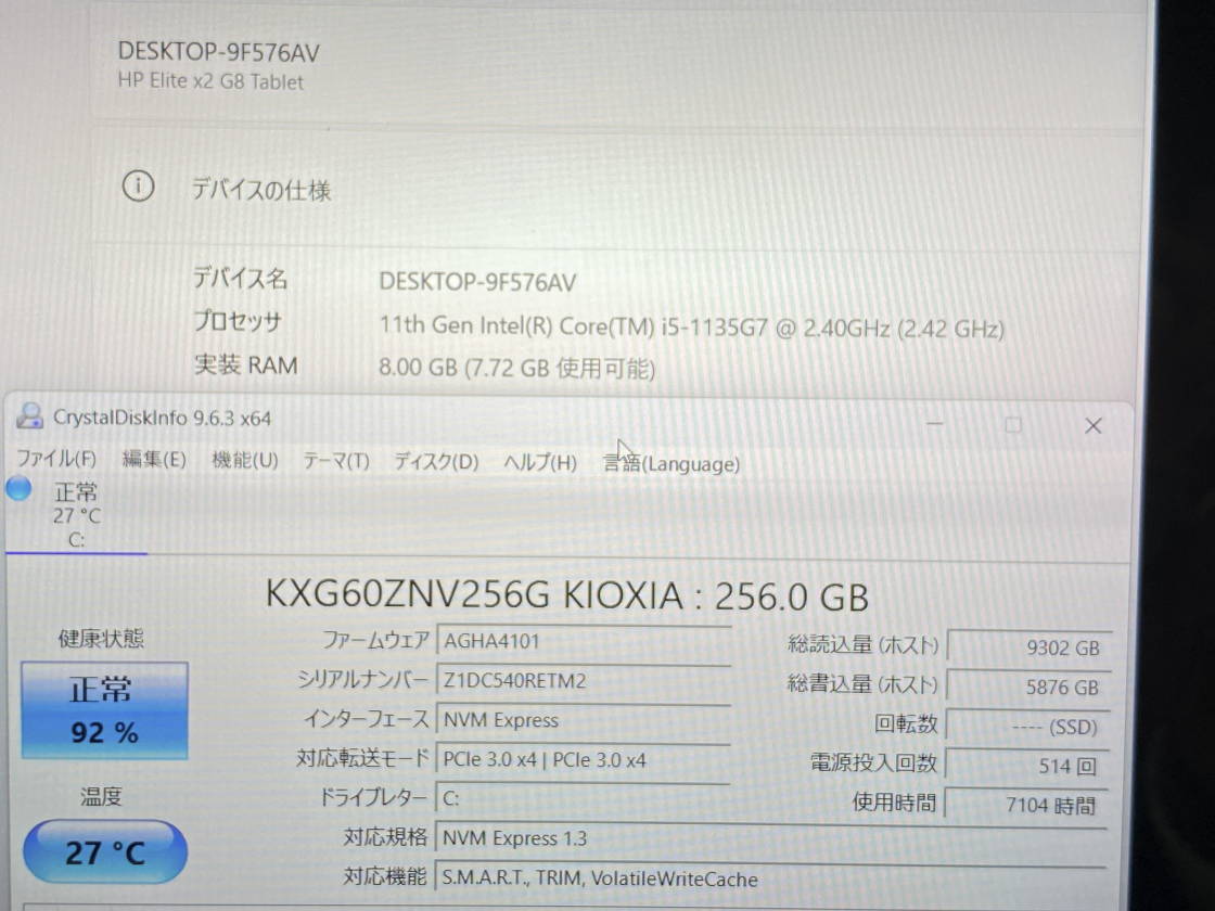 第11世代Core i5タブレット 超速起動NVMe256GB