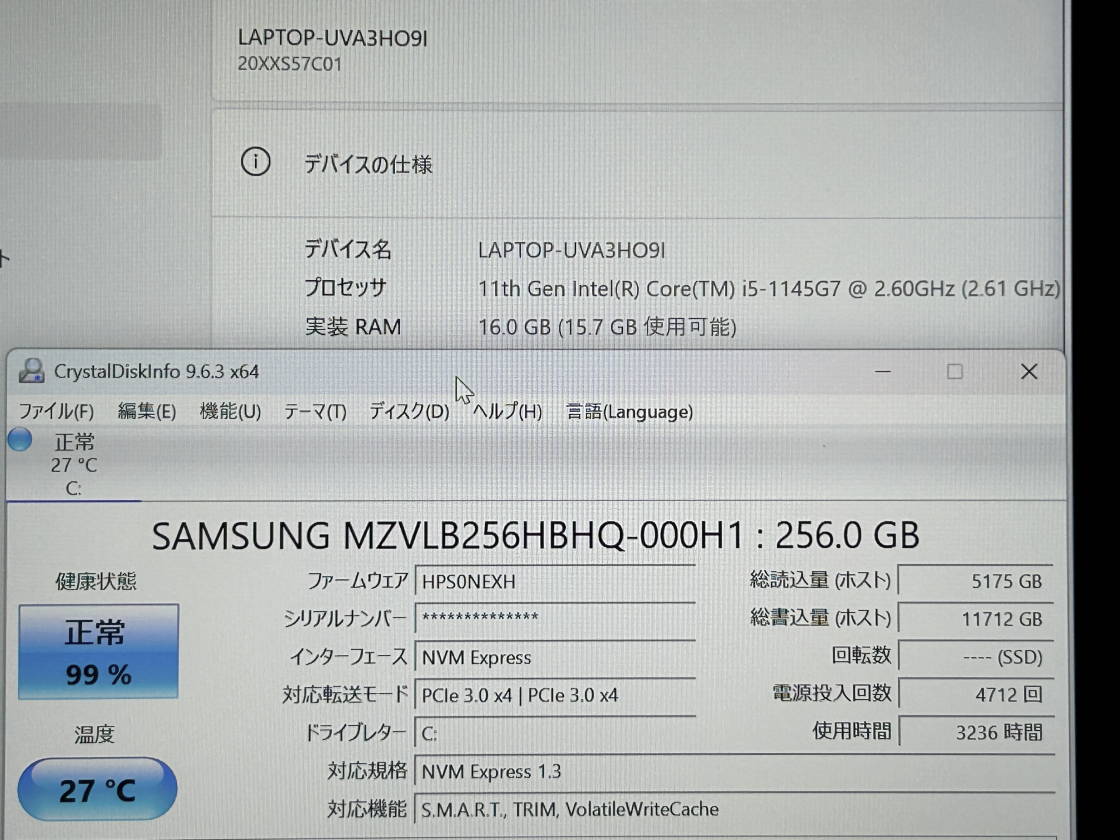 | CPU | 第11世代TigerLake Core i5 1145G7 2.6GHz | メモリ | 16GB |
