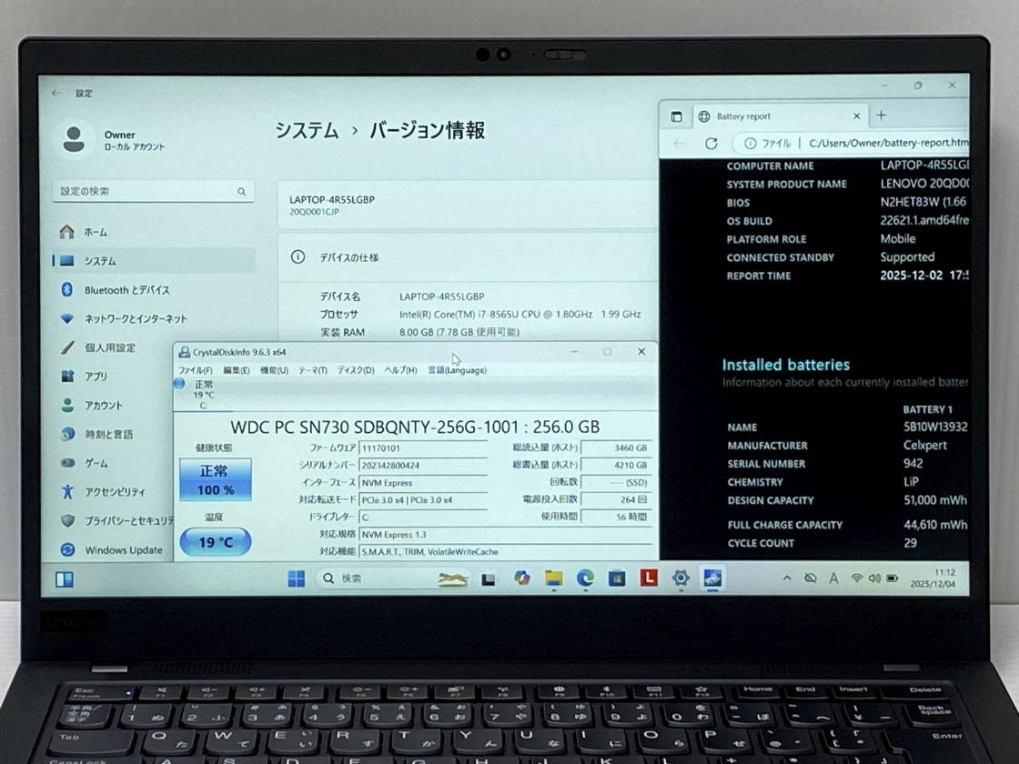| CPU | INTEL 第8世代WhiskyLake Core i7 8565U 1.8GHz | メモリ | 8GB |