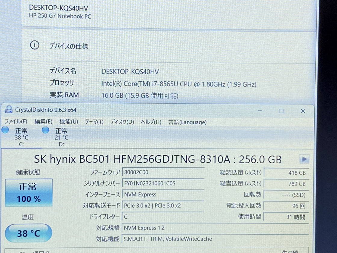 SSDを交換していないと仮定すれば31時間の使用時間となります。