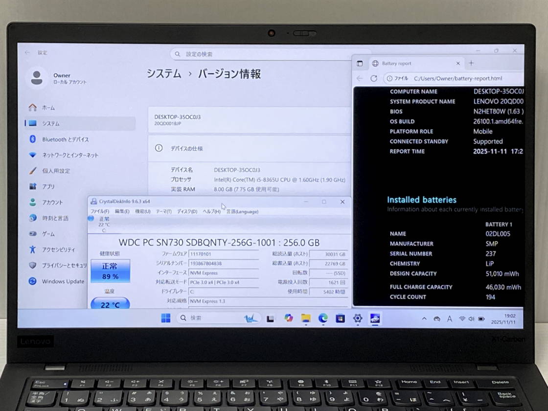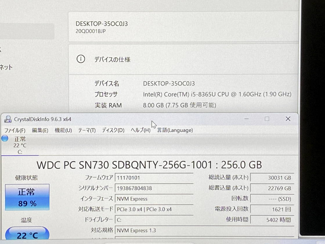 | CPU | 第8世代Whiskeylake Core i5 8365U 1.6GHz | メモリ | 8GB |