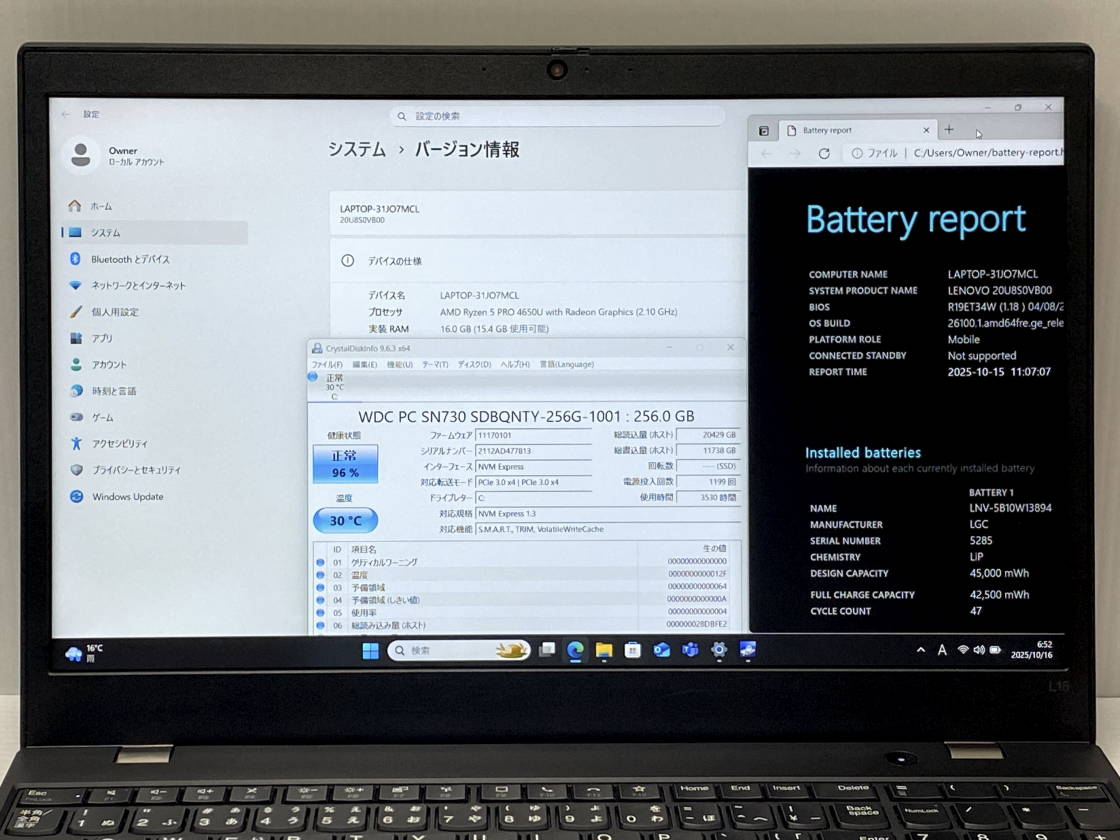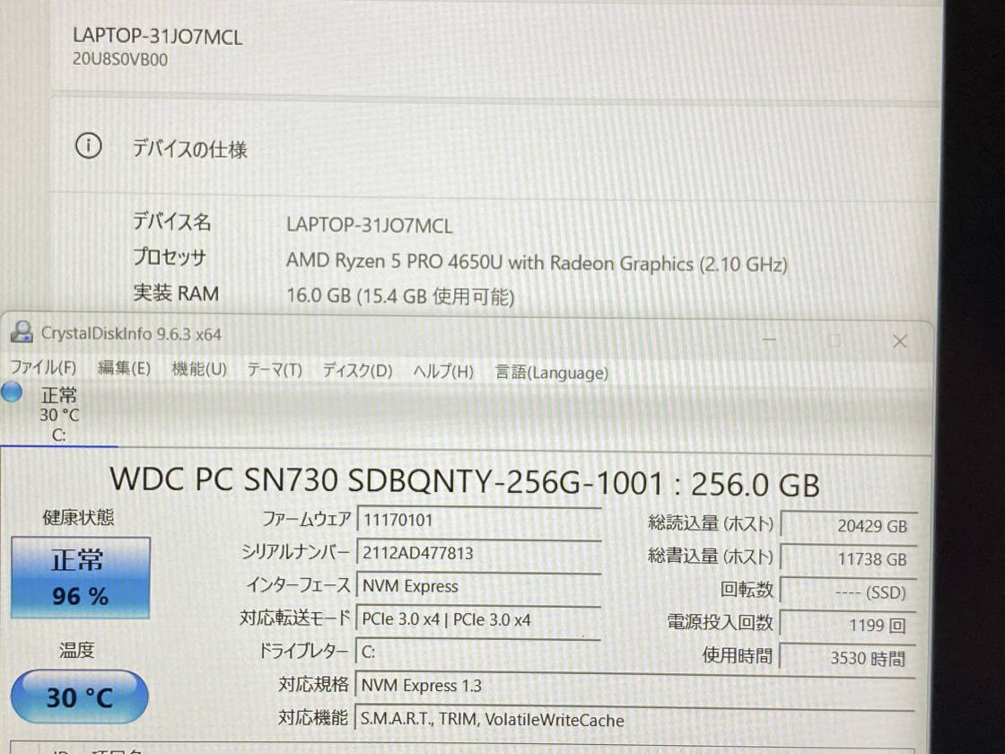 | CPU | AMD Ryzen 5 PRO 4650U 2.1GHz | メモリ | 16GB |