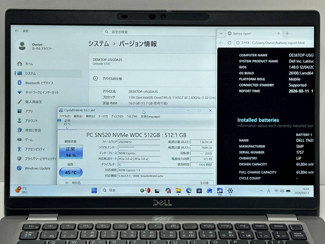 WIN11クリーンインストール。DELLサポートアシストにてドライバ完全ですがメーカー出荷時アプリはございません。